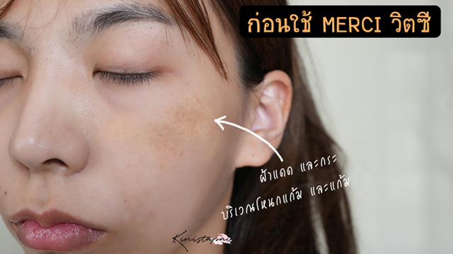 นี่คือก่อนใช้ เมอร์ซี่ วิตซี สูตรทาฝ้า ขวดดำ จะเห็นว่าปายมีฝ้าแดดและกระบริเวณโหนกแก้ม