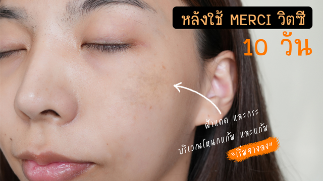 และนี่คือผลลัพธ์จากการใช้ เมอร์ซี่ วิตซี สูตรลดฝ้าทั้งหมดประมาณ 14 วัน ฝ้าปายลดลงไปแล้ว ถึงแม้ว่ารอยฝ้า กระยังเหลืออยู่บ้าง แต่ส่วนตัวมองว่า เป็นผลลัพธ์ที่น่าพอใจมาก ๆ เพราะฝ้า กระจางลงอย่างเห็นได้ชัด
