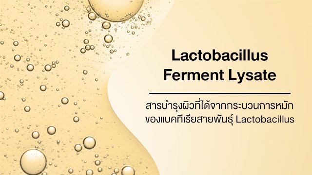 “Lactobacillus Ferment Lysate” เป็นสารบำรุงผิวที่ได้จากกระบวนการหมักของแบคทีเรียสายพันธุ์ Lactobacillus โดยการนำมา Lysate นั่นคือ การทำลายผนังเซลล์ของจุลินทรีย์เพื่อให้ได้น้ำภายในเซลล์ที่ประกอบด้วยสารอาหารนานาชนิดที่มีประโยชน์ต่อผิวพรรณ