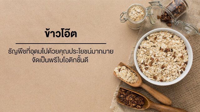 "ข้าวโอ๊ต" จัดเป็นธัญพืชที่อุดมไปด้วยคุณประโยชน์มากมาย จัดเป็นพรีไบโอติกชั้นดี ช่วยในการเจริญเติบโตของจุลินทรีย์ ทั้งยังช่วยปกป้องผิวจากอนุมูลอิสระที่ทำลายผิว