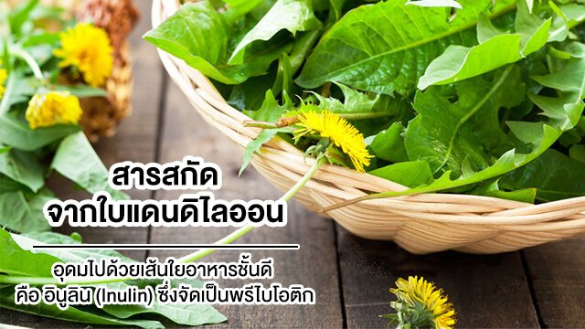 แดนดิไลออน (Dandelion) จัดเป็นไม้ดอกชนิดหนึ่ง โดยใบแดนดิไลออนอุดมไปด้วยเส้นใยอาหารชั้นดี คือ อินูลิน (Inulin) ซึ่งจัดเป็นพรีไบโอติก ช่วยให้จุลินทรีย์ดีเหล่านั้นเจริญเติบโตและแข็งแรง จึงช่วยช่วยให้ผิวมีสุขภาพดี แข็งแรง เกิดสิวได้ยากขึ้น