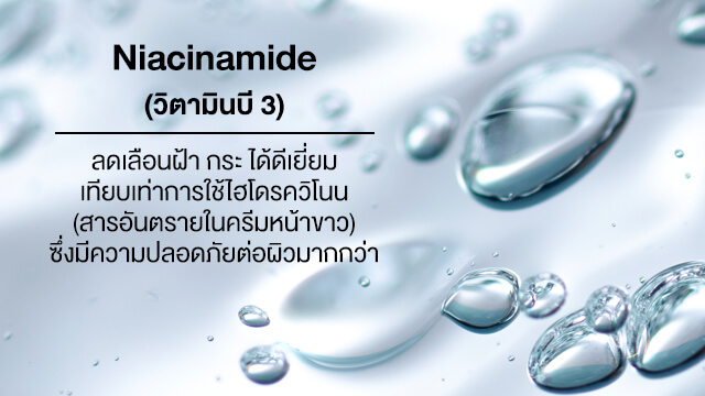 Niacinamide (ไนอะซินาไมด์) หรือ วิตามินบี 3 ถือเป็นวิตามินที่โดดเด่นเรื่องการเติมความชุ่มชื้นให้ผิว และยังมีคุณสมบัติลดการเกิดฝ้า กระ จุดด่างดำได้อย่างดีเยี่ยม