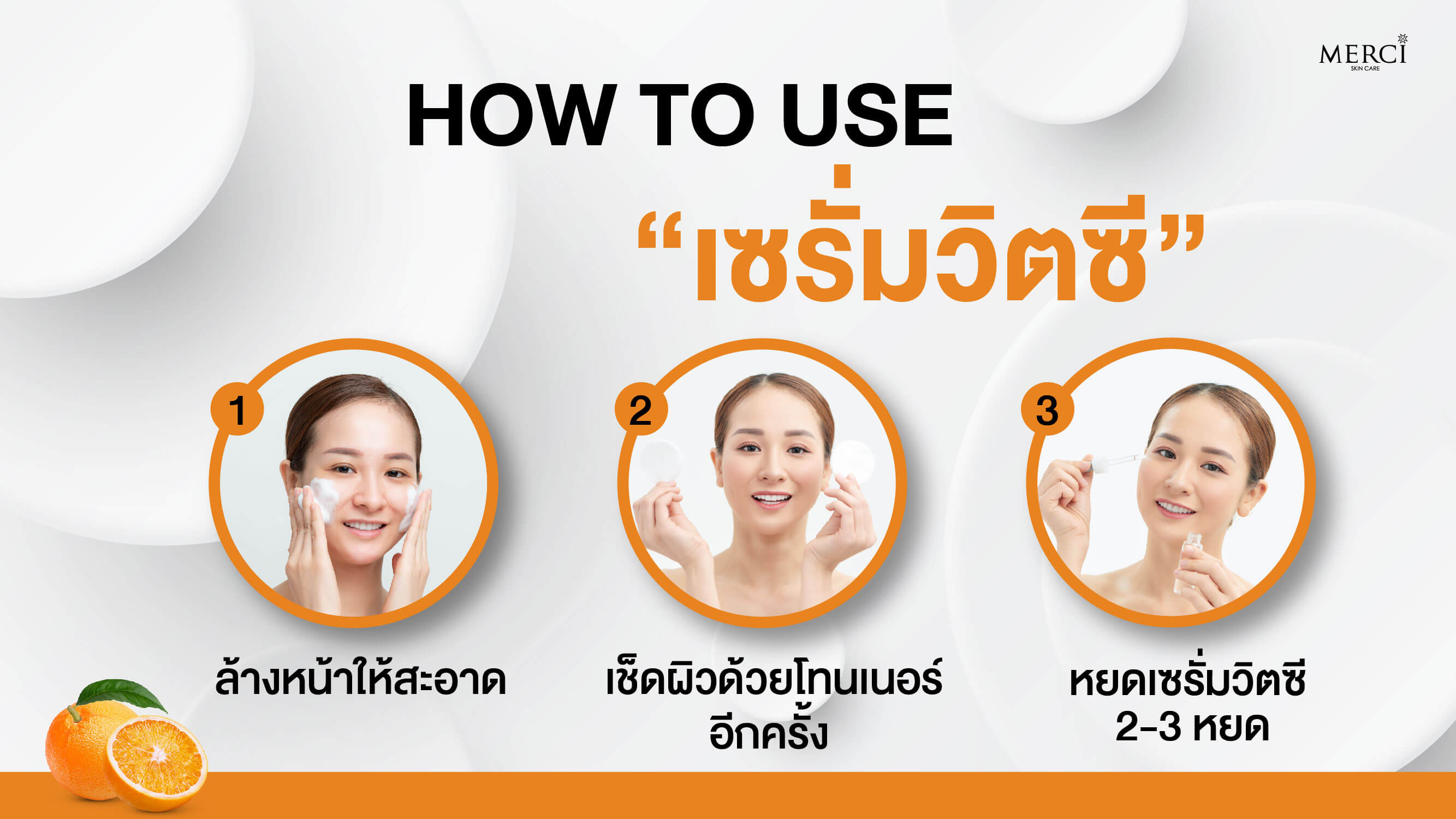 เพื่อน ๆ สามารถใช้เซรั่มวิตซีได้ทั้งตอนเช้าและตอนกลางคืน โดยมีขั้นตอนวิธีใช้ ดังนี้