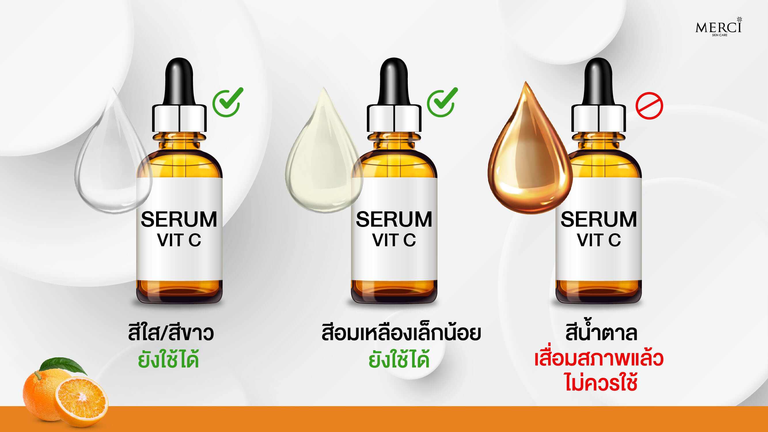 หากเมื่อใดก็ตาม!! ที่เนื้อเซรั่มวิตามินซีเปลี่ยนเป็นสีน้ำตาล นั่นแปลว่า เซรั่มเสื่อมสภาพแล้ว ให้หยุดใช้โดยทันที แต่หากเนื้อเซรั่มยังออกสีอมเหลืองเล็กน้อย ยังสามารถใช้ต่อไปได้